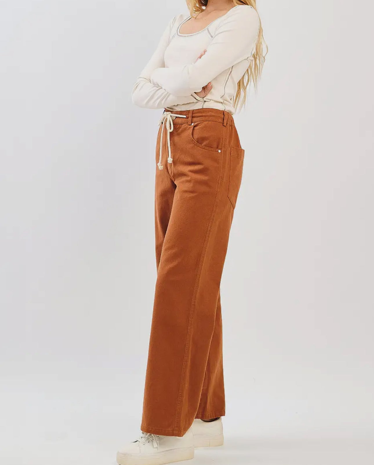 These twill pants feature a comfortable elastic waistband with an adjustable drawstring for a perfect fit. Designed with a straight leg cut, they offer a refined silhouette that effortlessly balances casual ease with polished style. Crafted from durable twill fabric, they provide lasting comfort and a sleek appearance suitable for both work and leisure.